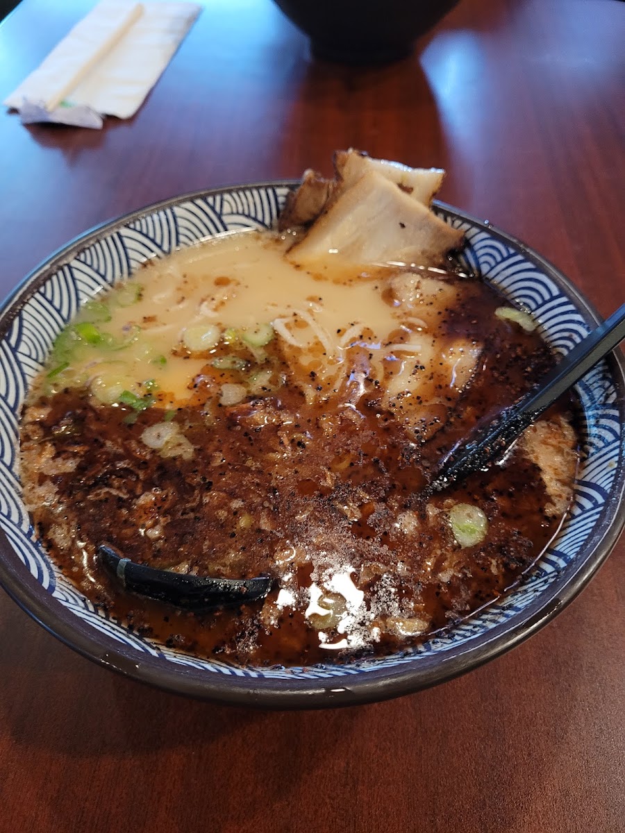 The interior blends straightforward comfort with subtle nods to its Japanese roots, meaning it’s not an elevated, break-the-bank sushi bar, but somewhere approachable for locals and visitors alike. It's a place you'd find groups sharing a variety of dishes — from bubbly gyoza and crispy calamari tempura to bowls of ramen rich with housemade broths, like the Black Garlic Tonkotsu or the spicy Crazy Man Ramen.